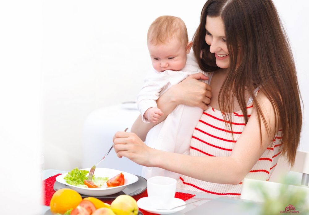 - принимая пищу в часы кормления ребенка, по режиму, можно избавить себя от дополнительных соблазнов полакомиться вкусненьким в вечерние и ночные часы.