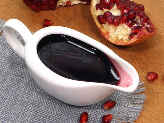 Шеф-повара уверены, что гранатовый соус – одна из лучших приправ к мясу. Представляет он собой густой гранатовый сок со специями, который варится наподобие джема. Гранат послужит вам и для придания красоты салату: нужно выложить ядра граната по всей поверхности закуски.